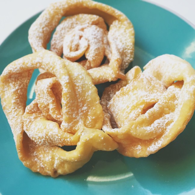 J’ai pensé à ça en écrivant le mot « crostole » (qu’on pronconce « crostolé »). Dans ma famille, on a toujours dit « crost« , peu importe que ce soit le côté de Grand-maman ou de Nonna. On coupe le « ole » comme si on était trop paresseux. Je sais très bien qu’en Italie on prononcerait chaque syllabe, parce qu’en omettre une serait un crime.
