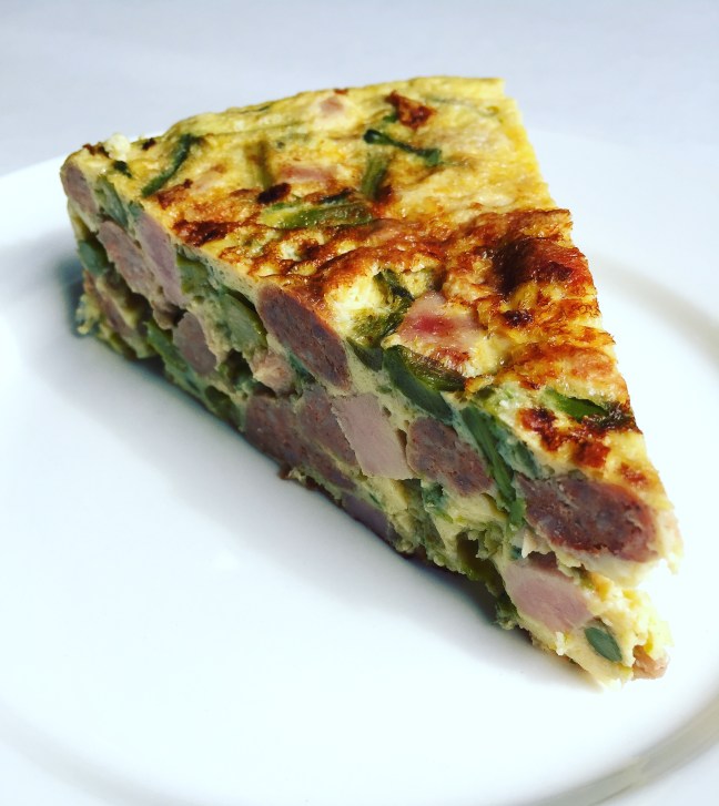 Alors, cette fois-ci, on y va avec une recette de circonstance: la frittata de Pâques de Grand-maman. Cette recette n’est écrite nulle part et seule Maman la connaît. Depuis que je suis toute petite, c’est un incontournable durant la période pascale. Oubliez le chocolat. Pour moi, ce n’est pas Pâques si on ne mange pas de la bonne frittata de Grand-maman (ok, ça prend quand même un peu de chocolat…). On ne peut plus traditionnel que ça: mon arrière-grand-mère faisait cette même frittata. Chez nous, on la prépare durant la semaine de Pâques et on en mange un peu à tous les jours. Vous pouvez la déguster chaude mais ici on la préfère froide. Je vous la conseille fortement pour votre brunch de Pâques!